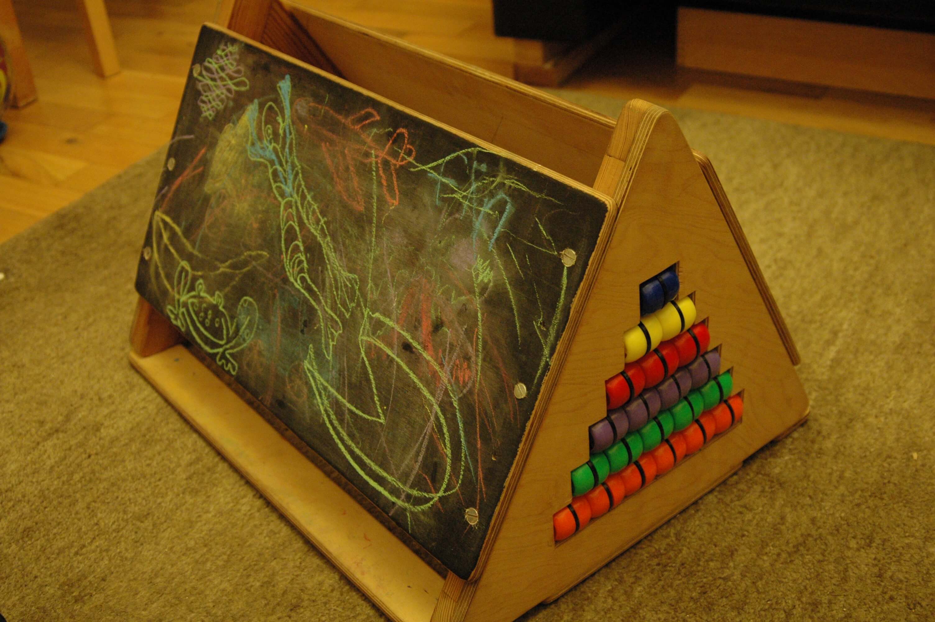 Toddler's play area with chalkboard, tactile areas, with inner storage and hiding places for toys. 12mm plywood