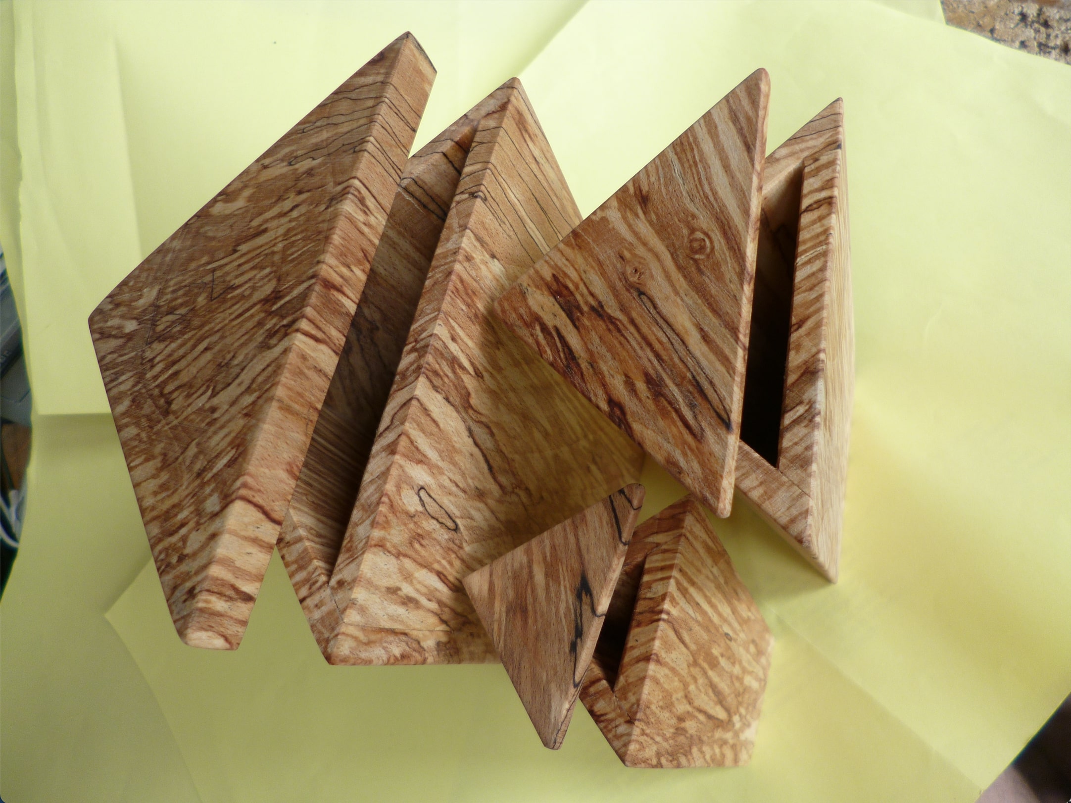 Stacking trio of boxes for 3rd Birthday present made from palted Beech block.
