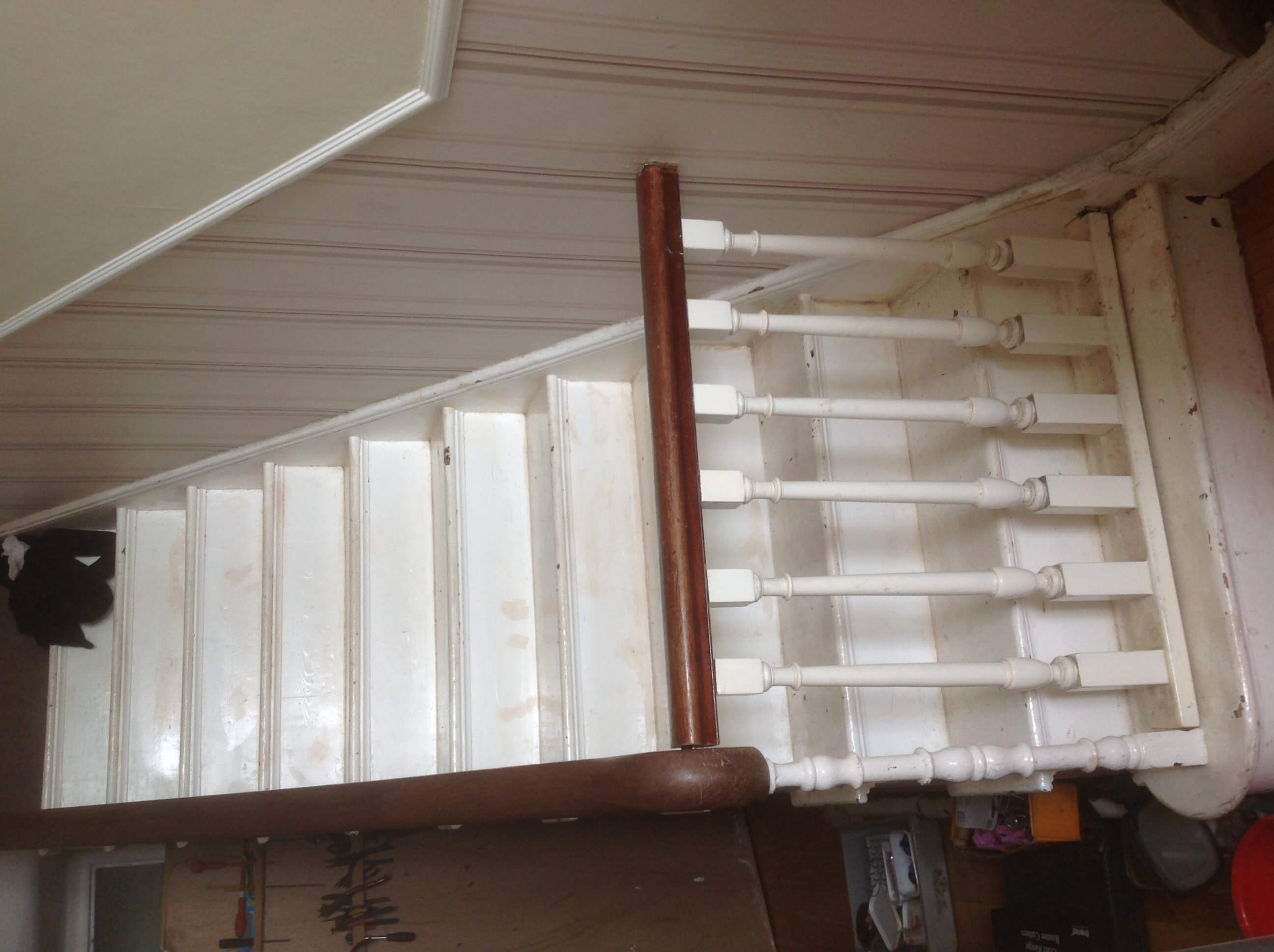 Stairgate to match victorian staircase with pine ballustrades and recycled bannister rail.