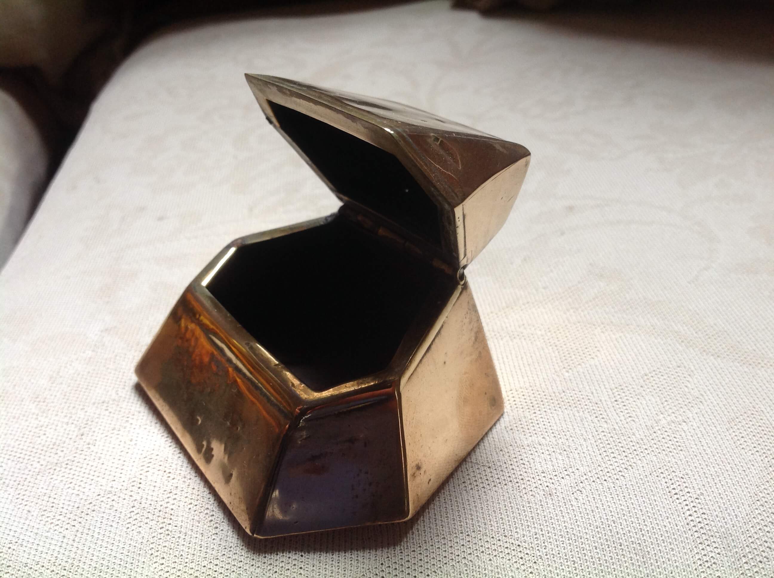 Jewellery box made from hinged brass sheet with silver soldered joins.