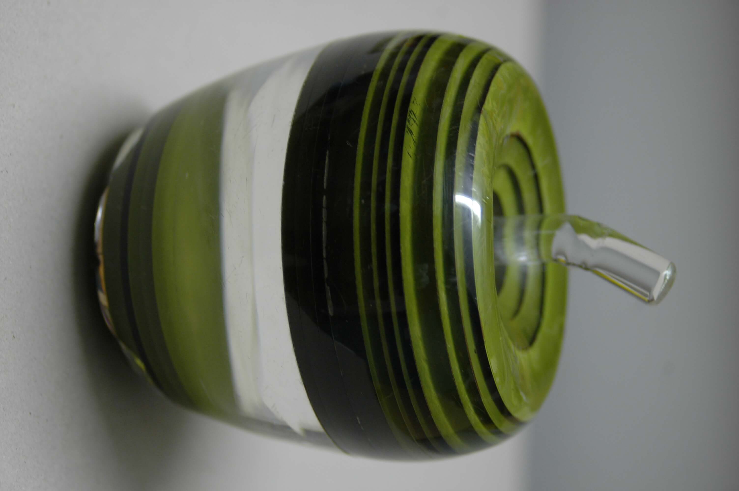 Acrylic Apple sculpture made from layers of acrylic shaped by lather. Green additive to acrylic glue. 120mm tall