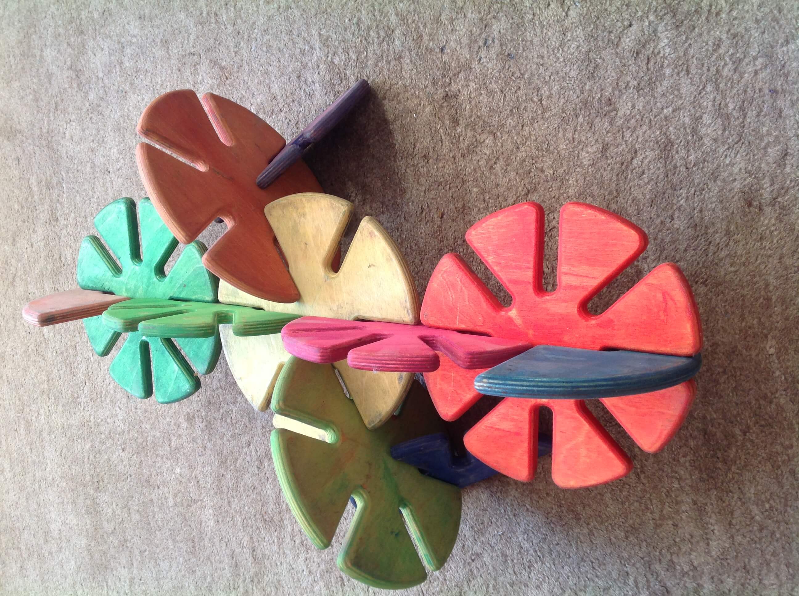 Slotted floor toy made of 13mm birch plywood with 6 and 8 slot shapes.
